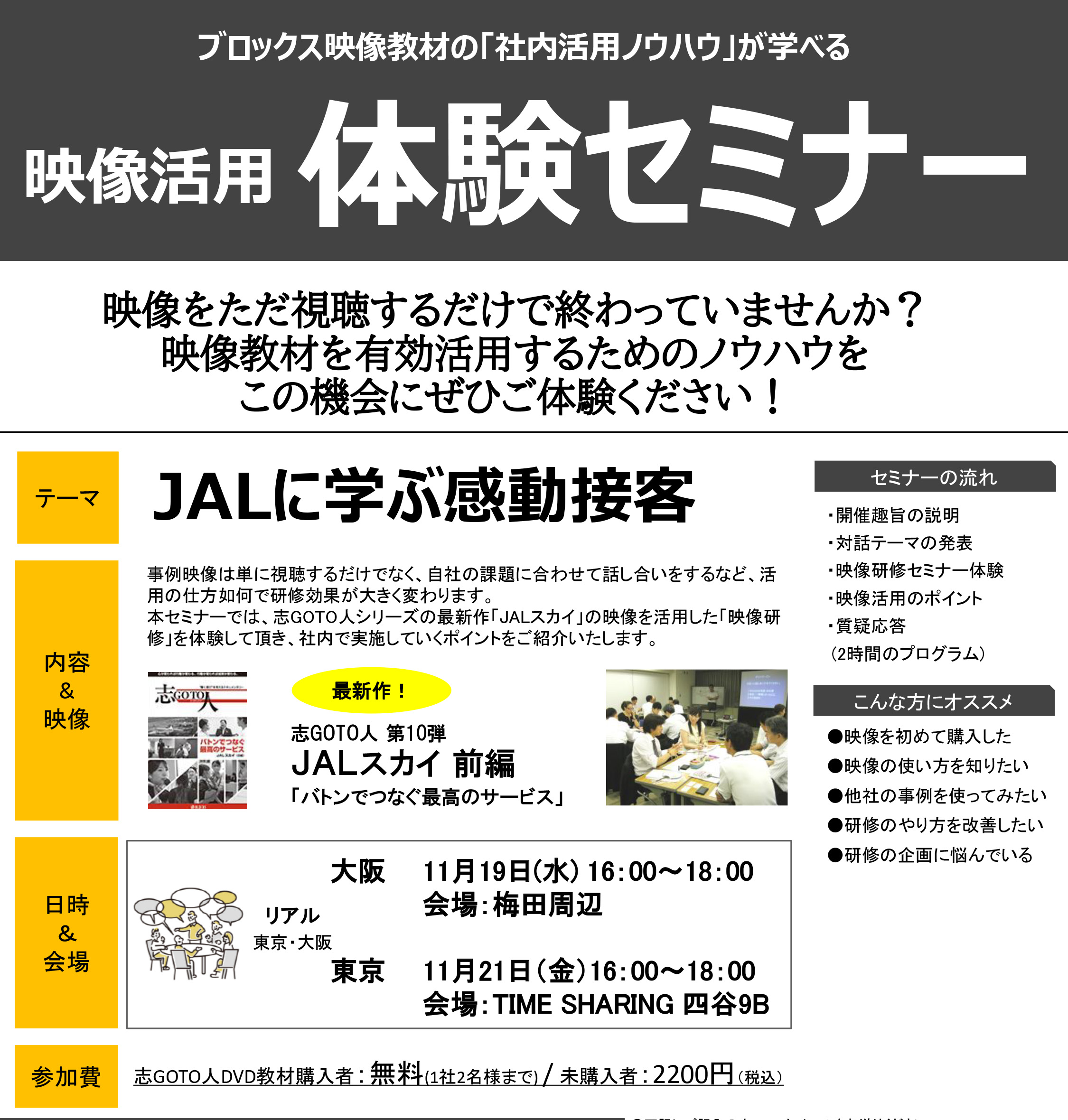 ブロックス映像教材の「社内活用ノウハウ」が学べる JALに学ぶ感動接客 |